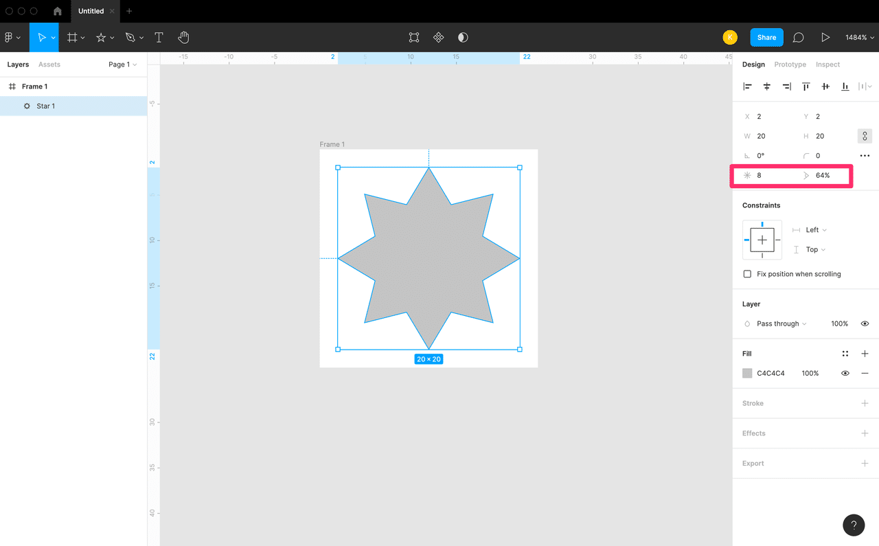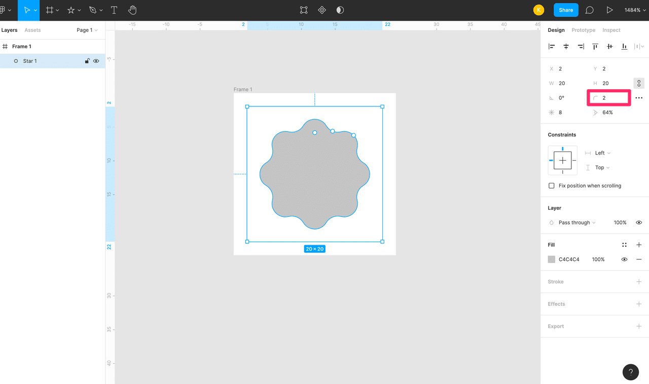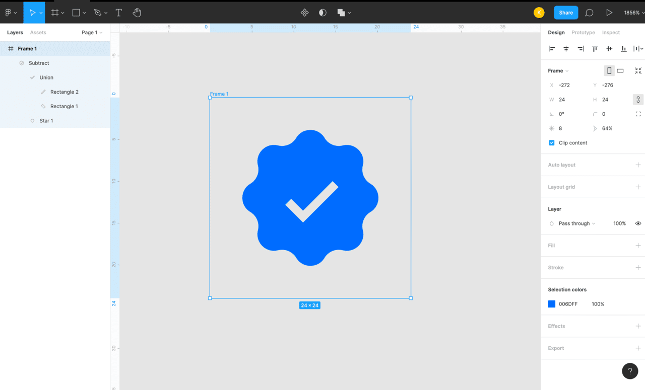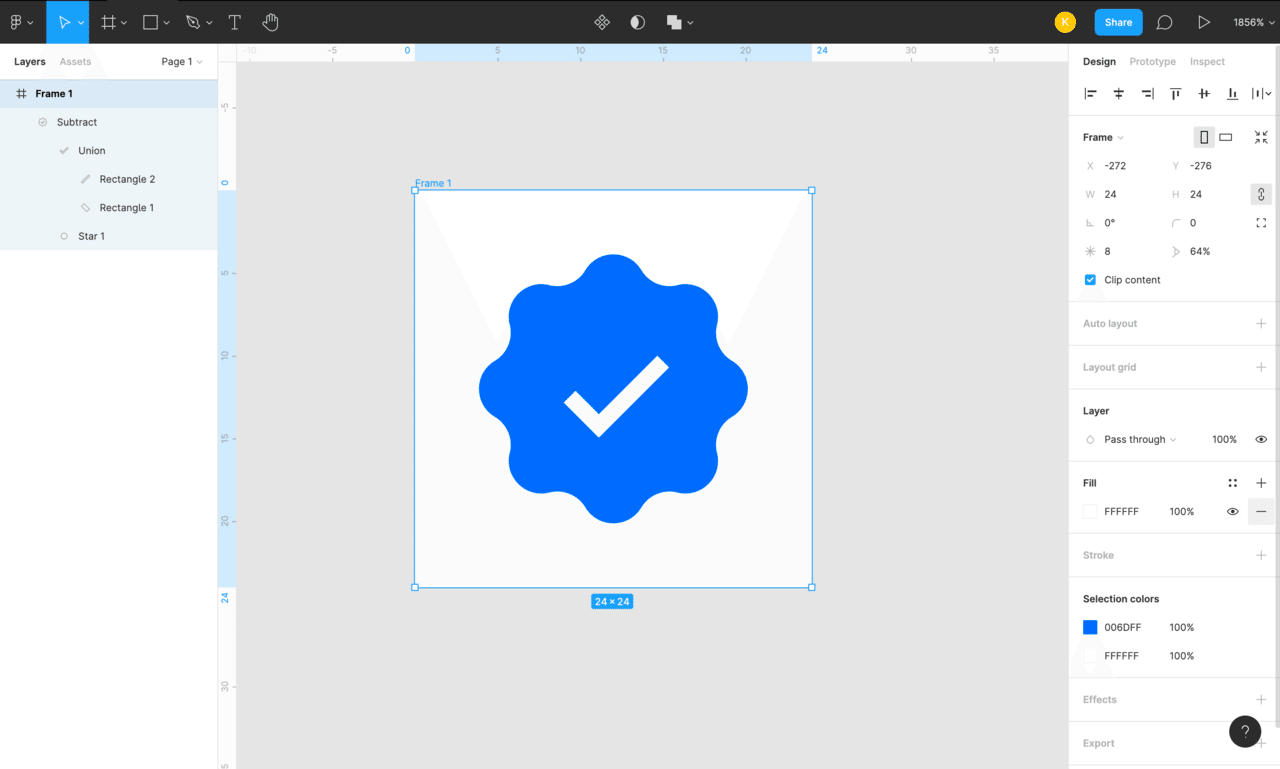 Starのサイズは、24×24pxのサイズ内に収まるようにしましょう。「なぜ24×24px目一杯でオブジェクトを作らないの?」と疑問に思う方もいらっしゃるかもしれませんが、理由は後ほど補足で説明しますね---