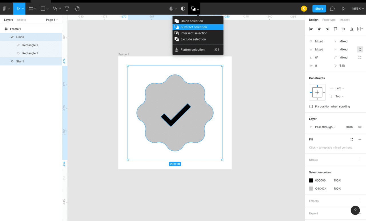 「Union selection」を選択して、合体しちゃいましょ〜---