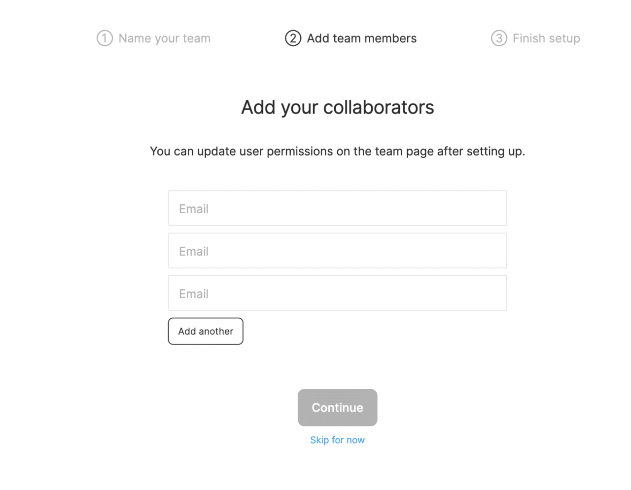 次に、チームにメンバーを招待します。あとからでも、招待できますのでここはスキップで大丈夫です。