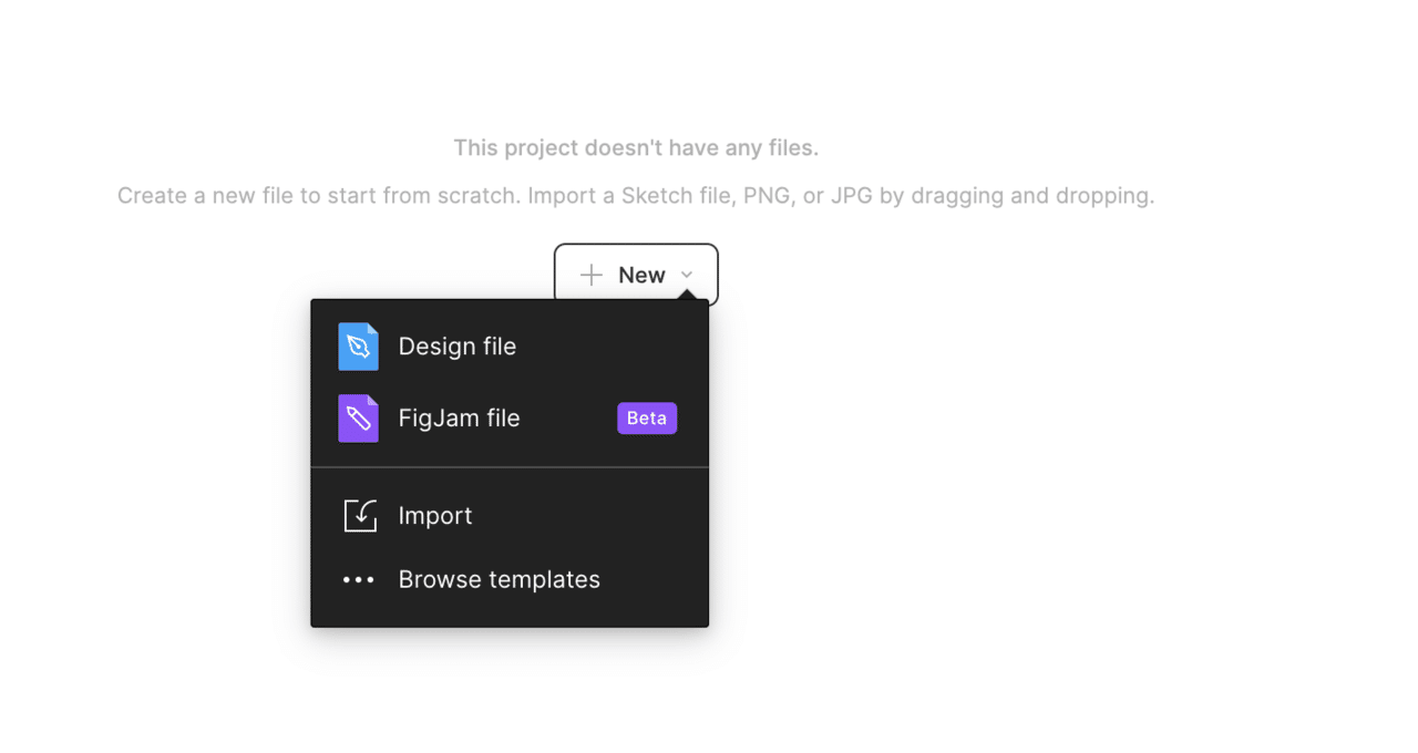 次に、デザインファイルを作成します。「Fig jam file」というのは、最近追加されたホワイトボードのようなツールです。まだちゃんと使用したことはありませんが、MTGの際に活躍してくれそうなツールですね。今度レビューしてみたいと思います。