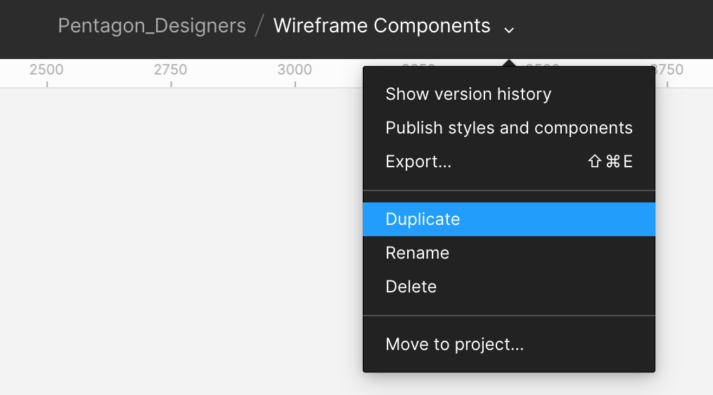 「Move」を押すと、「Project A」内にコピー版ファイルを移動させることができます。 こうすることで、コンポーネントを0から作ることなく、すでに用意されたコンポーネントを使ってワイヤーフレームを組み立てていくことができます!