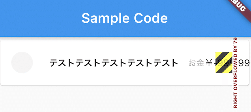 これが使用したコードです。ここの ‘A RenderFlex overflowed’ のエラーを今回は解決していきます。