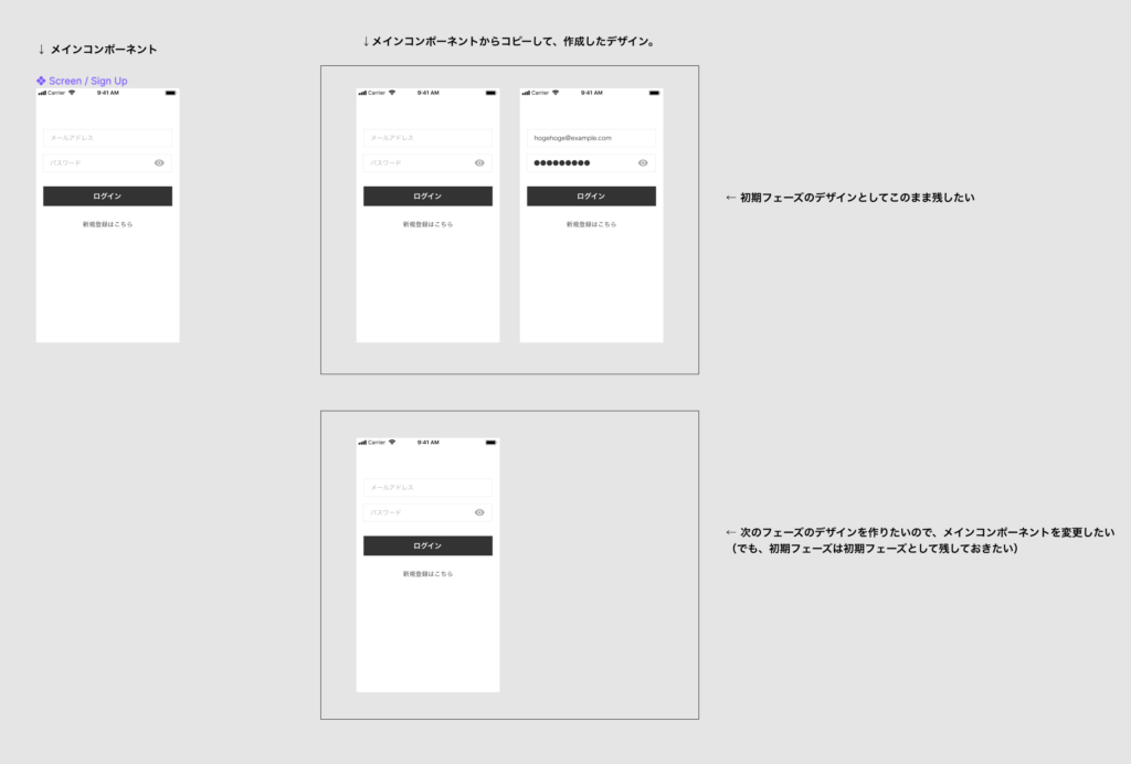 【具体的な利用シーン】 アプリ開発における初期フェーズのデザインのために作成したメインコンポーネントを、次のフェーズのデザインのために上書きしたい。しかし、初期フェーズのデザイン自体は変更せず残しておきたいとき。