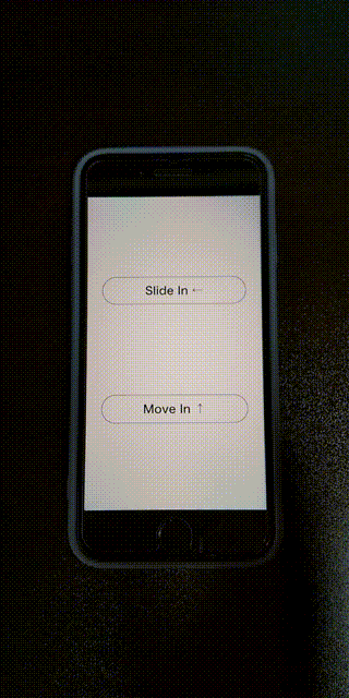 ▼ Slide In のボタンタップは「右から左に」遷移し、Move In のボタンタップでは「下から上に」遷移するように設定してる様子