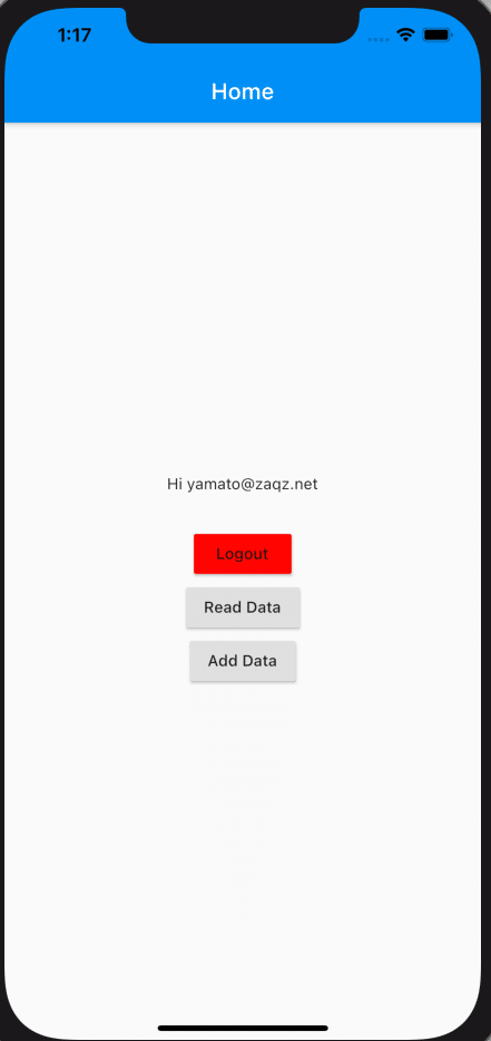 ログイン後に表示されるhome_viewのchildにボタンを追加してaddDataが呼ばれるようにします。