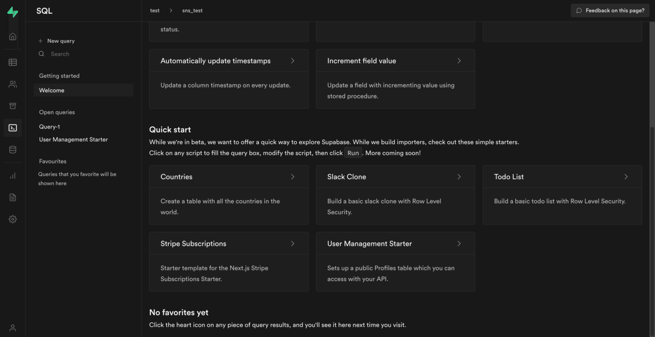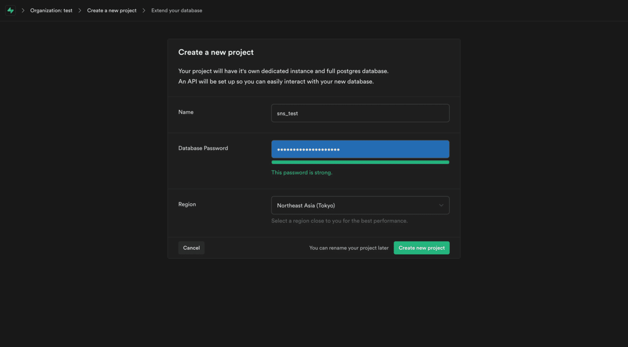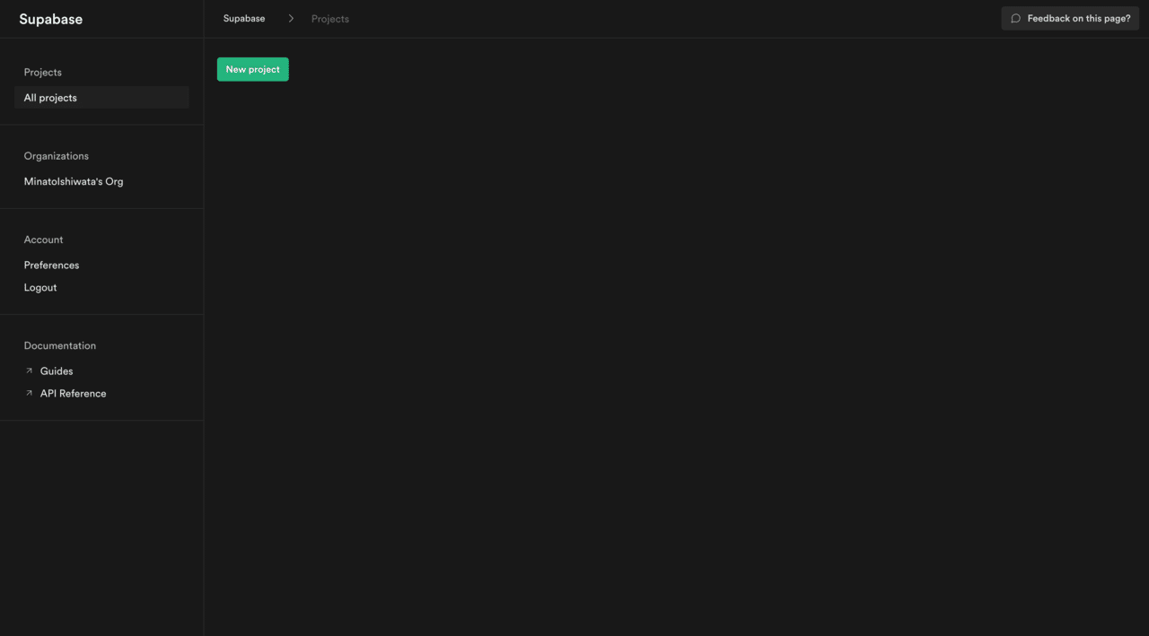 superbaseのプロジェクトを作る 1.1. https://app.supabase.io/ へアクセス 1.2. チームを作成
