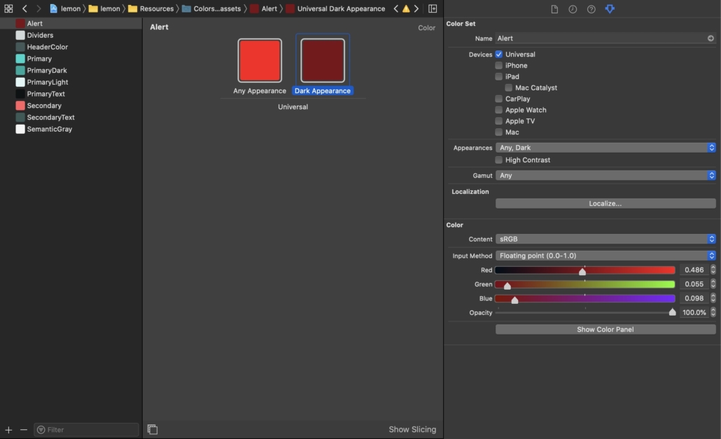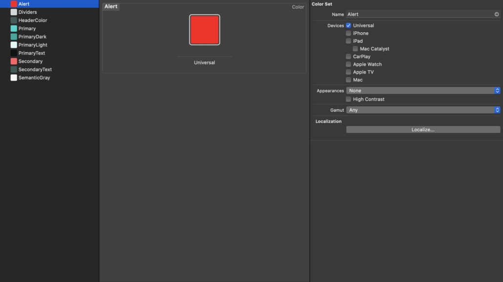 とはいえ、動作確認にかなり工数が取られます。開発時に、カラーは可能な限りAssets Catalogで管理するようにすると良いでしょう。