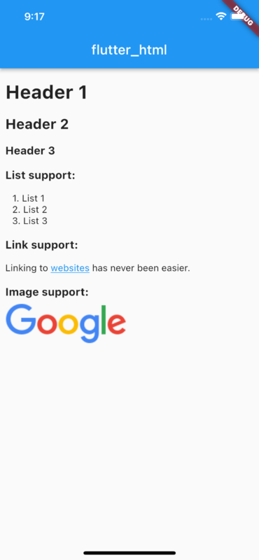 HTMLコンテンツをFlutterWidgetとして表示できます。