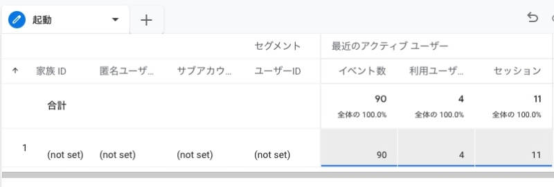 ここが最大のハマりポイントです。カスタムディメンションのイベントパラメータはテキスト、つまり、文字列で送信しなくてはなりません。 例えば、ユーザーIDなどのイベントパラメータを数値(1220や1221など)で値を持っている場合を考えてみます。これをそのままイベントパラメータとして送ると、数値と認識されて結果としてカスタムディメンションには認識されずnot setと表示されてしまいます。 以下のコードのように、toString()をつけて文字列として送信しましょう。