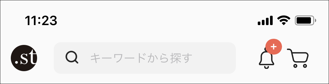 .stはECアプリのため、検索機能や通知、カートへの導線が置かれていますね。