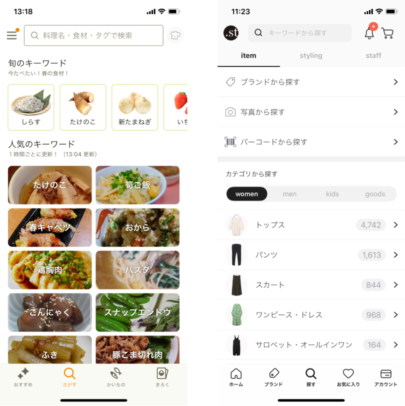 <カテゴリなど複雑な検索条件から探すタイプ:.st、クックパッド>