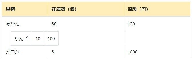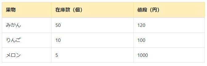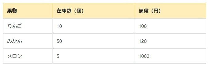 テーブルのスタイルは適宜CSSで整えてください。