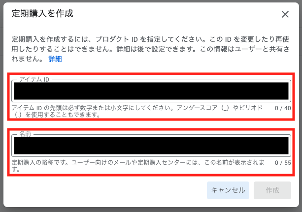 アイテムIDと名前(なんでもOK)を入力します。アイテムIDはiOSでいう製品IDと同様の扱いで、一意である必要があります。特にこだわりがなければiOSと同じIDにしておくのがいいでしょう。