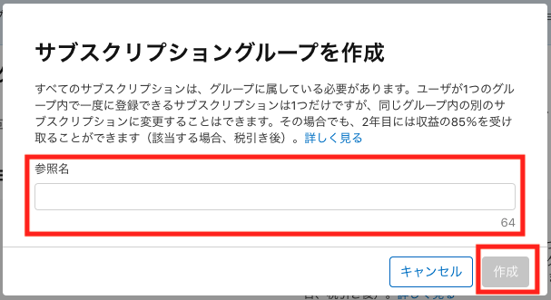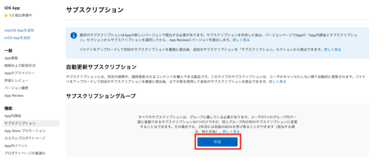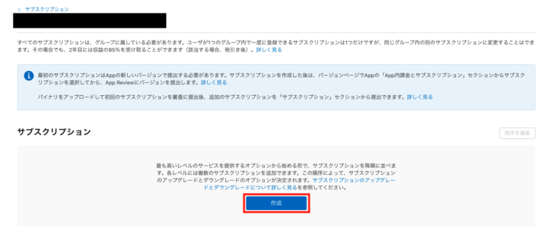 サブスクリプショングループを作成します。「作成」を押しましょう。