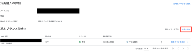 次はオプションですが、iOS同様に無料期間を設定します。 Andoridでは基本プランに特典アイテムを追加することで無料期間の設定を行います。「特典を追加」を押して先に進みましょう。