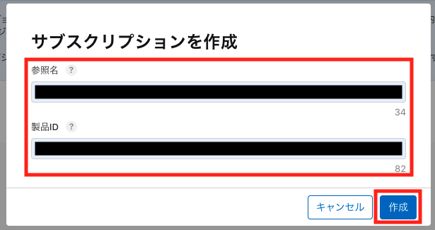 作成したサブスクリプショングループ配下にサブスクリプションを作成していきます。「作成」を押してください。