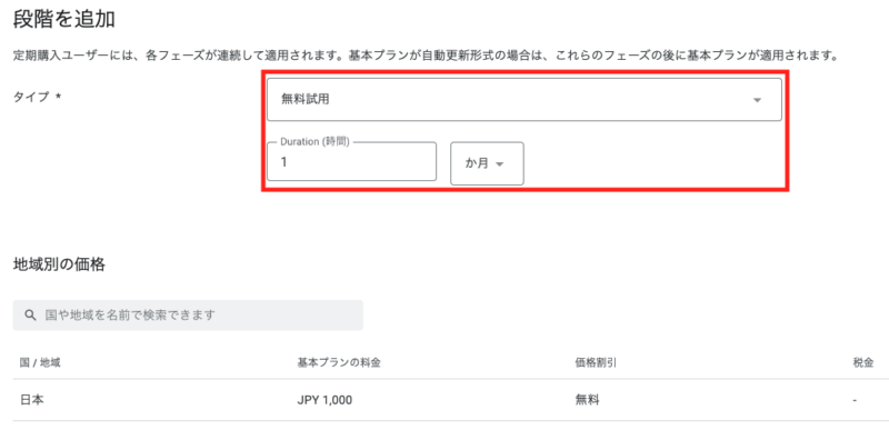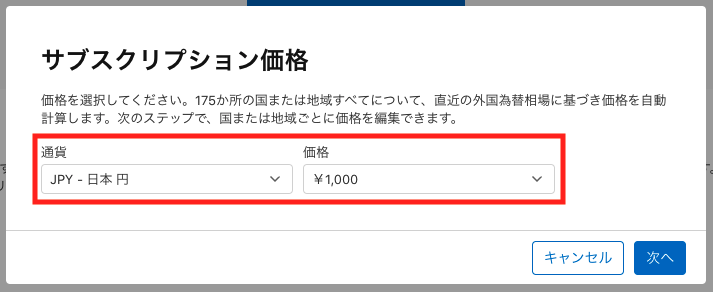 続いてサブスクリプションの価格の設定です。画面に沿って価格を入力していきましょう。
