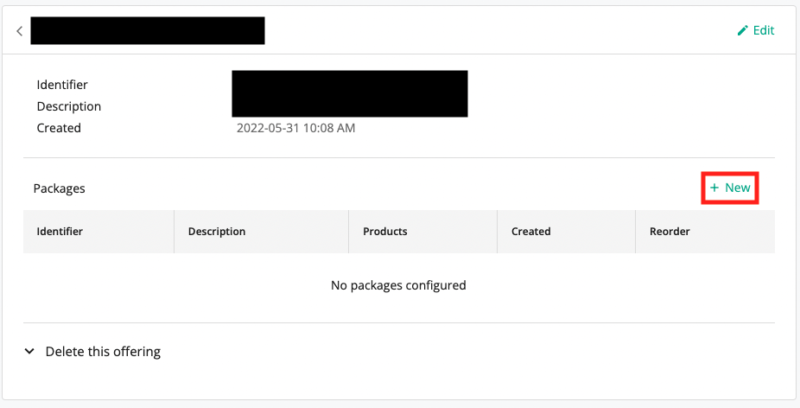 ③Packageの追加 Offeringが追加されていることがわかりますね。 Packageを紐づけるため、「0 packages」を押します。