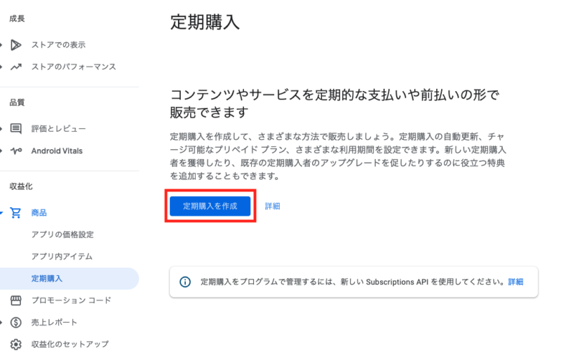 「定期購入」を押してサブスクリプションの作成・設定を行っていきます。