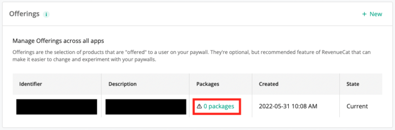 ④Offering Package群をひとまとめにできる構成要素を指します。 RevenueCatコンソールでPackage群の1つを選択(Current指定)することで、そのPachageが有効な課金アイテムとして機能します。コードでCurrent指定されたPackageを取得できるので、コードの変更なくして課金アイテムを変更できるというわけですね。