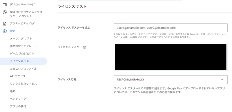 もう1つが、ライセンステスターの追加です。こちらにアカウントを追加することで、そのアカウントでは課金を行なっても実際に請求されることがなくなります。