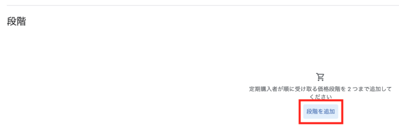 最後に段階を追加します。段階というとわかりにくい感じがしますが、これは特典の内容や提供期間を設定するフローです。