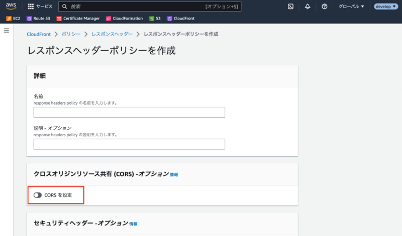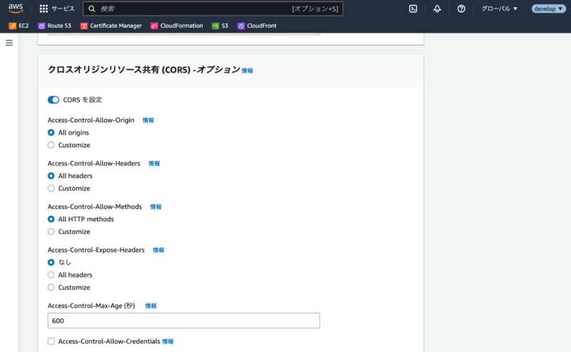 参考記事: CloudFront から「リクエストされたリソースに「Access-Control-Allow-Origin」ヘッダーが存在しません」というエラーを解決するにはどうすればよいですか? CloudFrontでCORS設定をするための3つのポリシーについて