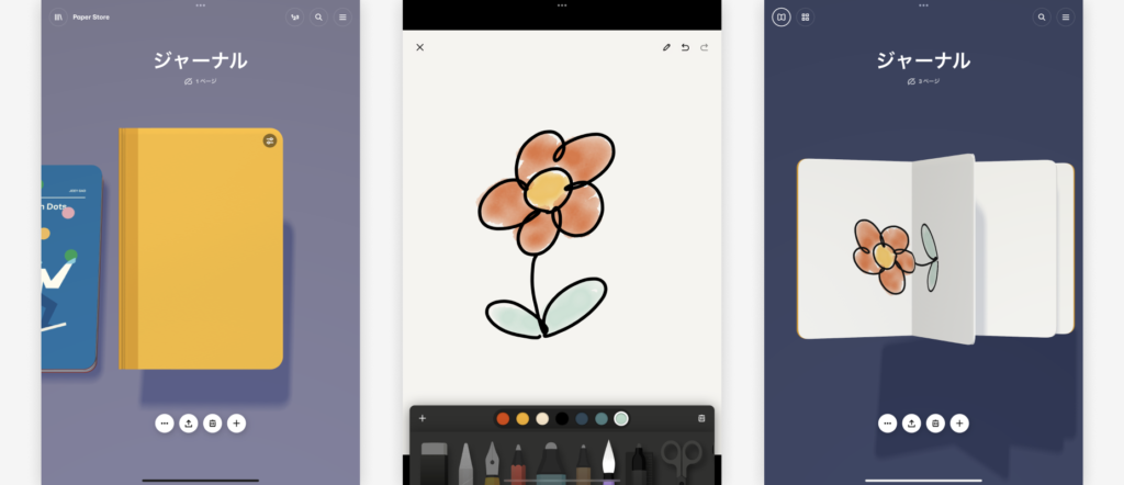メモやスケッチ、グラフィック系のアプリは数多くありますが、「ノートにアイデアを残す」という概念がわかりやすく表現されている印象でした。特にノートをぺらりとめくるアニメーションが素敵で、「今から書くぞ!」という気持ちにさせられます!