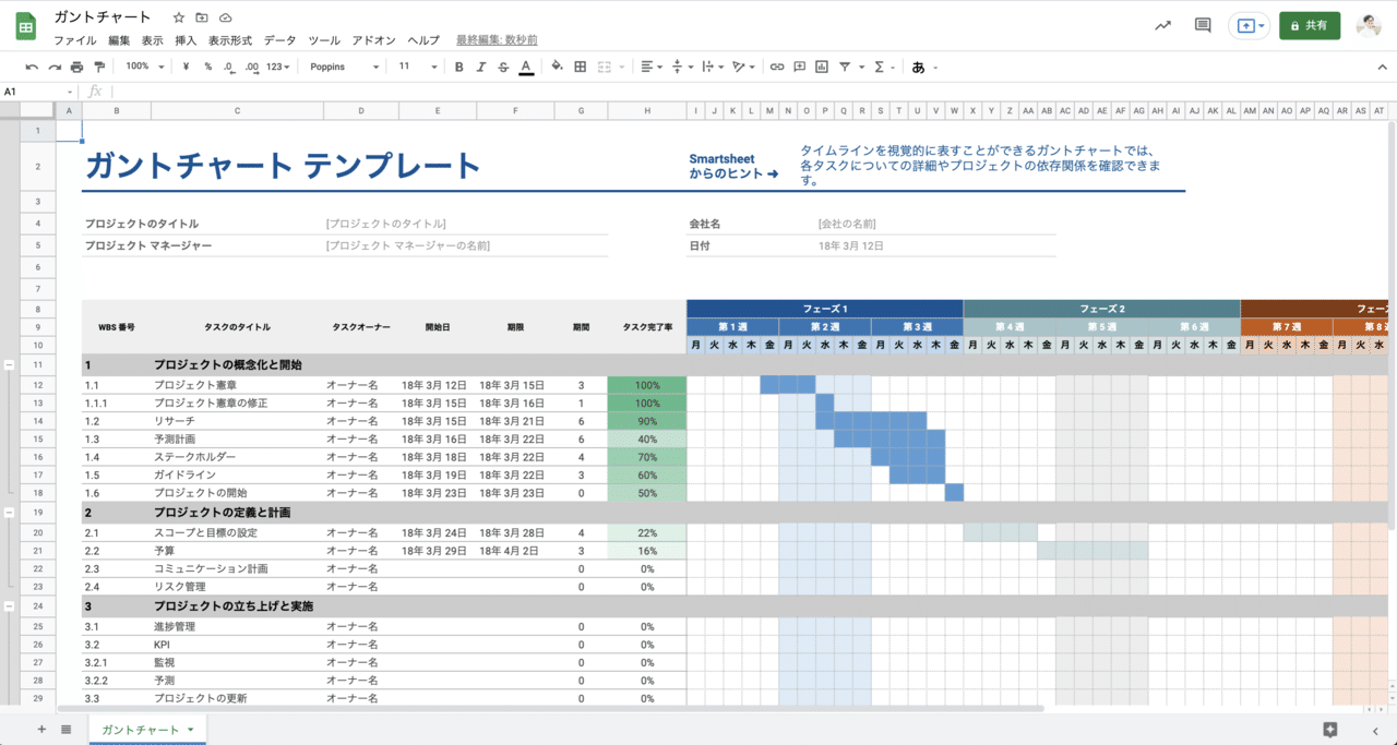 ※スプレッドシートに↑のようなテンプレートがあるので活用しましょう。