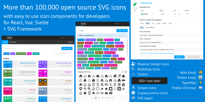IconifyはMaterial Design iconをはじめ多くのアイコンを検索/挿入することのできるプラグインです。プラグイン起動しアイコンを選択後インポートをクリックすると選択したアイコンが配置されます。沢山のアイコンがあるのでアプリのトーンに合わせて手軽にアイコンを選ぶことができます。