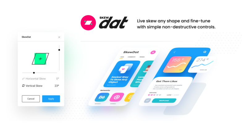 SkewDatはフレームを立体的に見せることができるプラグインです。フレームを選択後プラグインを起動し角度を調節することで立体的なフレームを作成できます。ストア画像作成の際などにモックアップを傾けたりして使うと良いです。