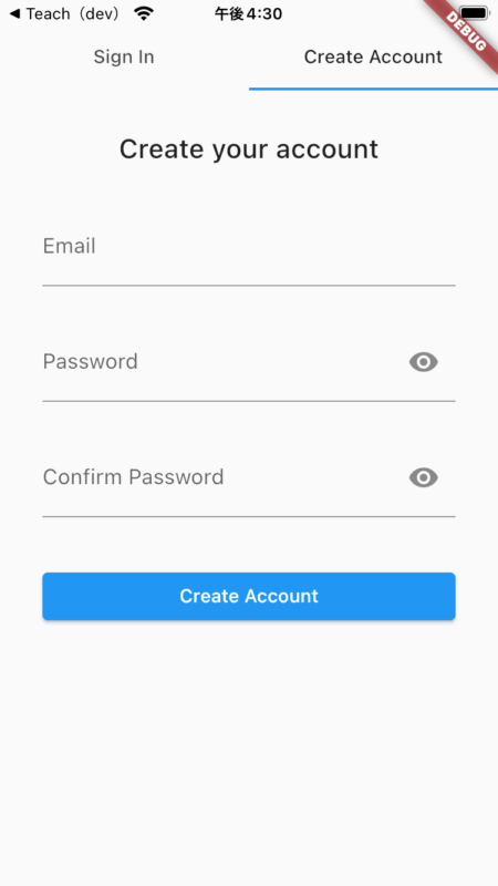 Flutterアプリが用意できたら、動作検証までの手順で、Eメールを用いたサインアップ&ログインの仕組みを構築します。