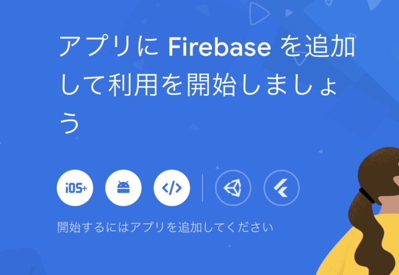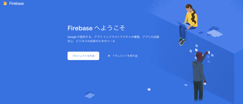 Firebaseの画面を開いてください。 https://firebase.google.com/?hl=ja