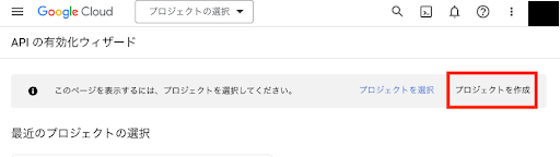 まずはGoogle Cloudコンソールからプロジェクトを作成します。 上記のリンクからAPIの有効化ウィザードに遷移して「プロジェクトを作成」を押下してください。