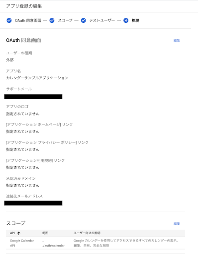 - デベロッパーの連絡先情報 → Googleからの連絡窓口