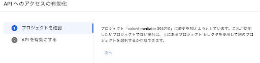 まずはGoogle Cloudコンソールからプロジェクトを作成します。 上記のリンクからAPIの有効化ウィザードに遷移して「プロジェクトを作成」を押下してください。