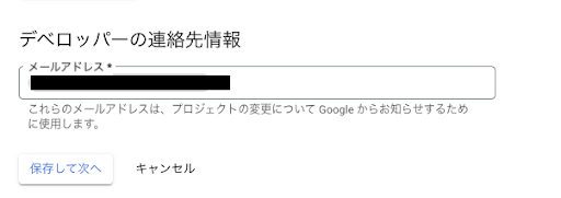 - デベロッパーの連絡先情報 → Googleからの連絡窓口