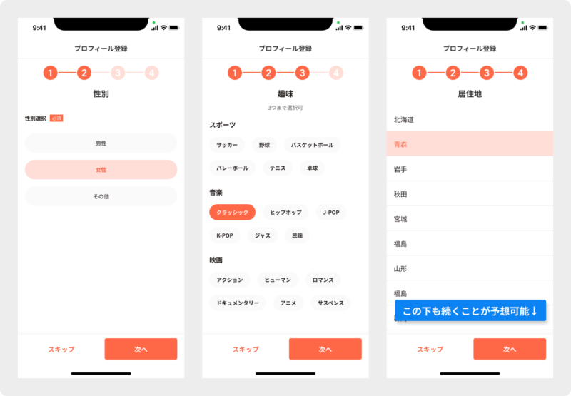 【結論】 プロフィール登録はステップでフローを分割しわかりやすく 項目に応じた適切な入力方法を検討する